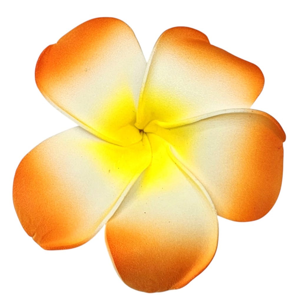 - 2 spinki do włosów imitujące egzotyczne kwiaty w odciniu różu oraz pomarańczy.