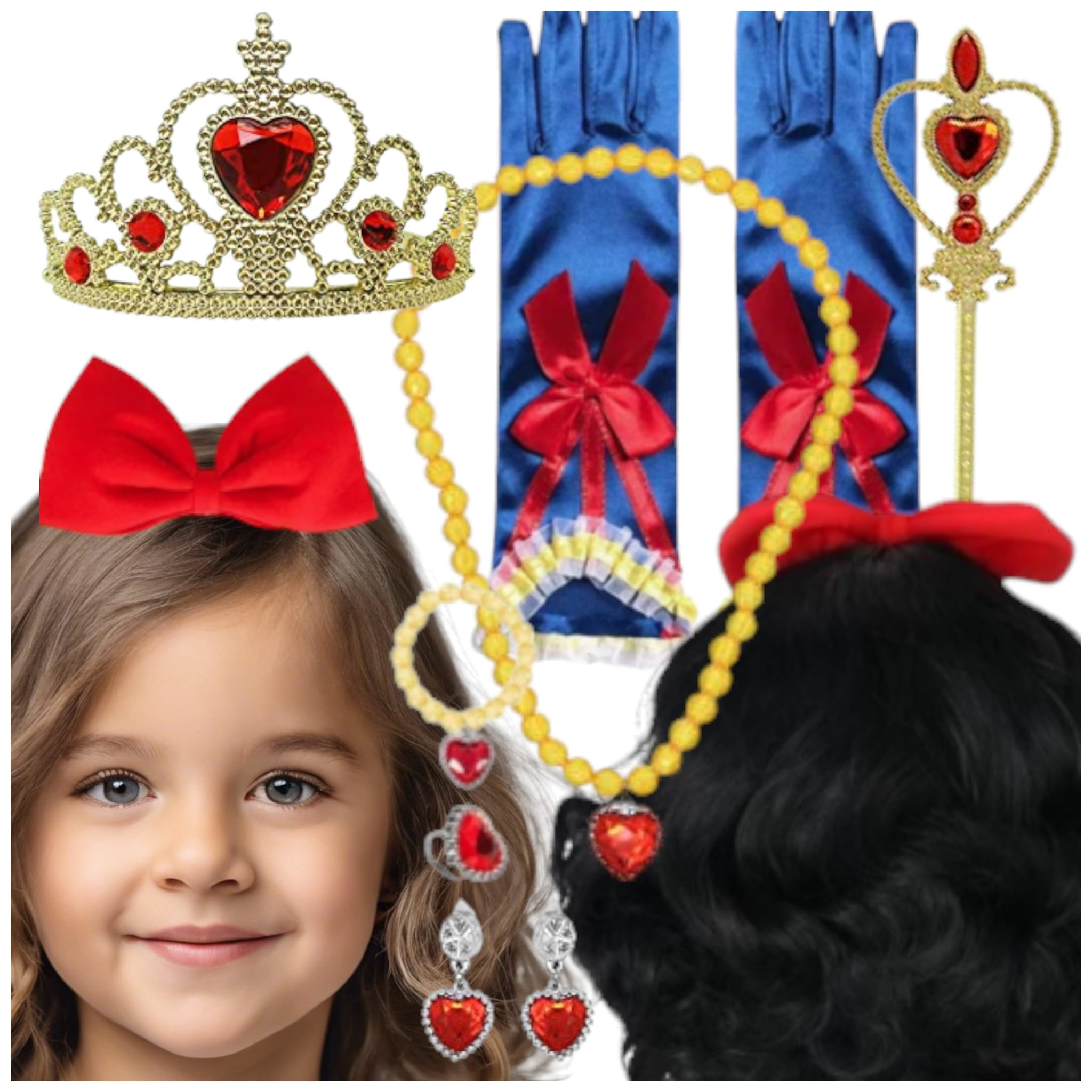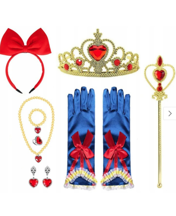 Wprowadź swoje dziecko w magiczny, świat dzięki naszemu zestawowi "Królewna Śnieżka". Ten piękny zestaw dodatków, pozwoli twojej małej marzycielce wcielić się w postać ukochanej księżniczki.