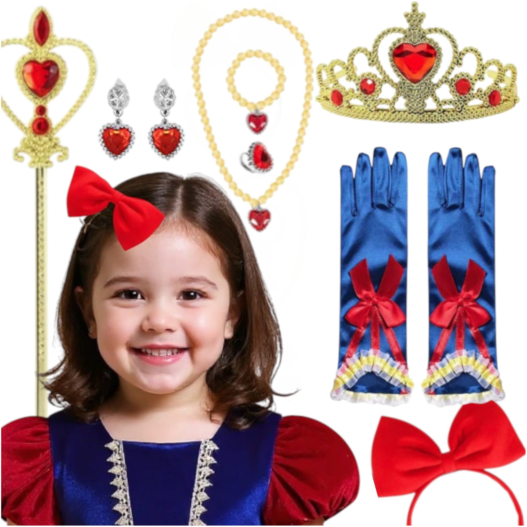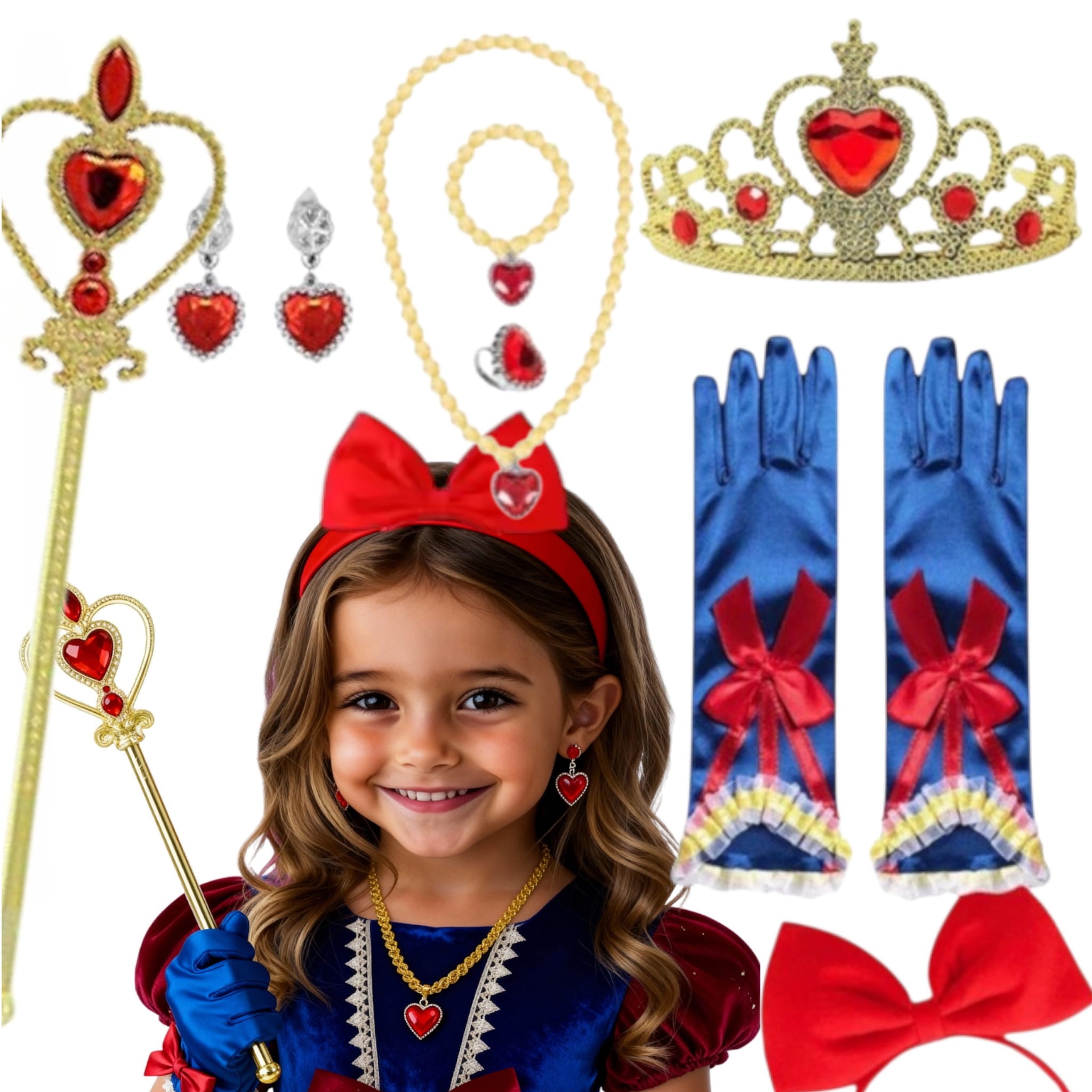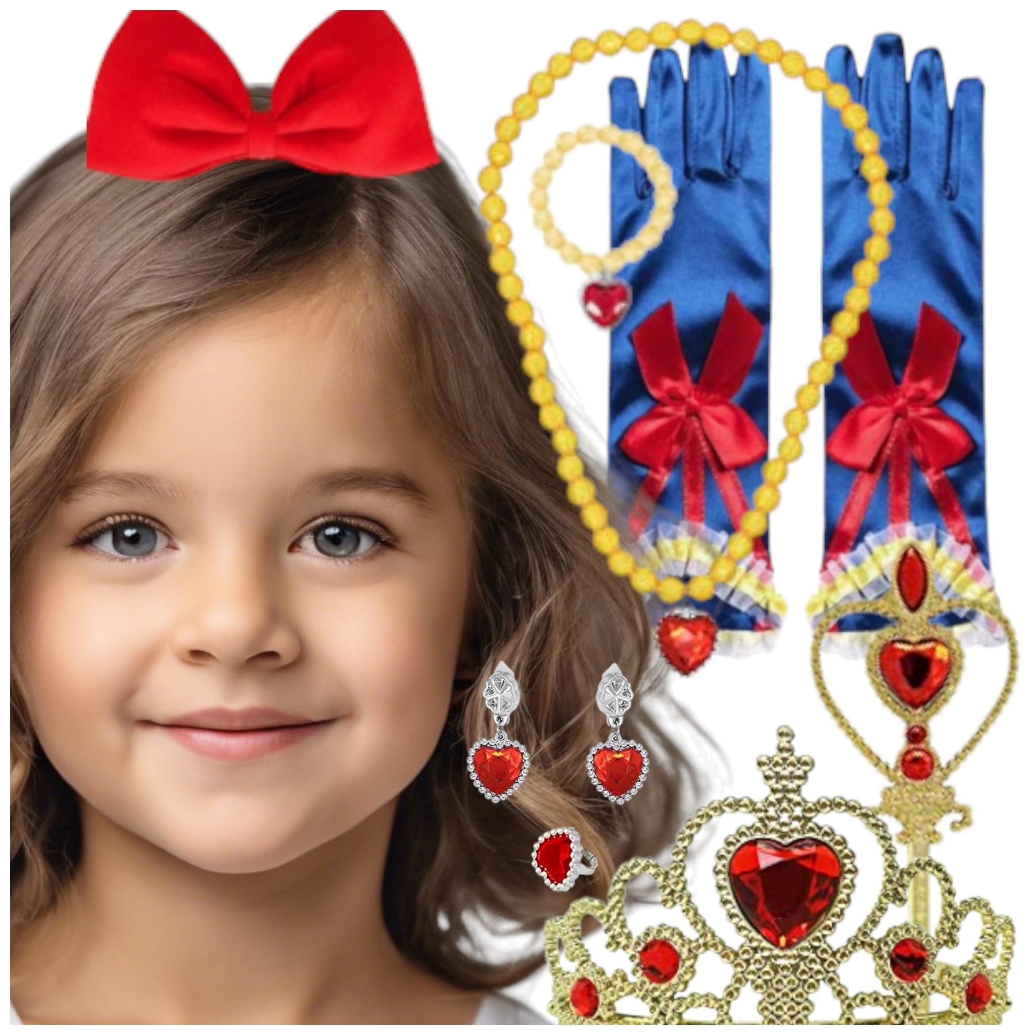 Wprowadź swoje dziecko w magiczny, świat dzięki naszemu zestawowi "Królewna Śnieżka". Ten piękny zestaw dodatków, pozwoli twojej małej marzycielce wcielić się w postać ukochanej księżniczki.