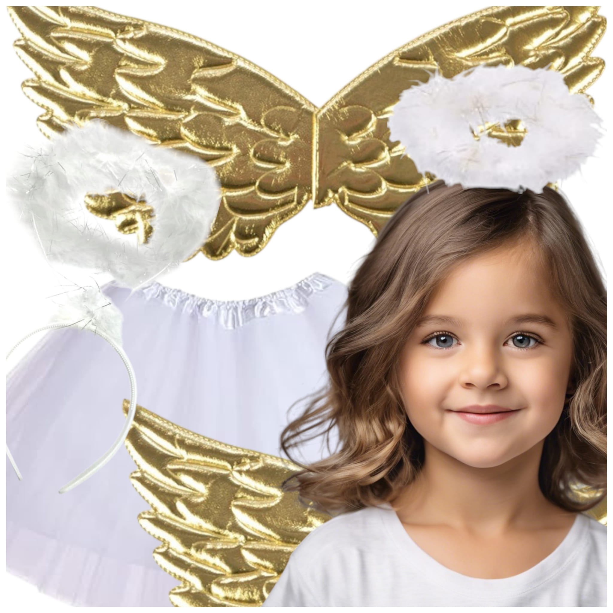 Uroczy zestaw "Aniołek" to idealna stylizacja na Bal Wszystkich Świętych, zabawę Mikołajkową oraz Jasełka