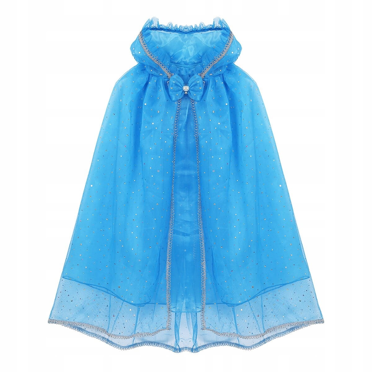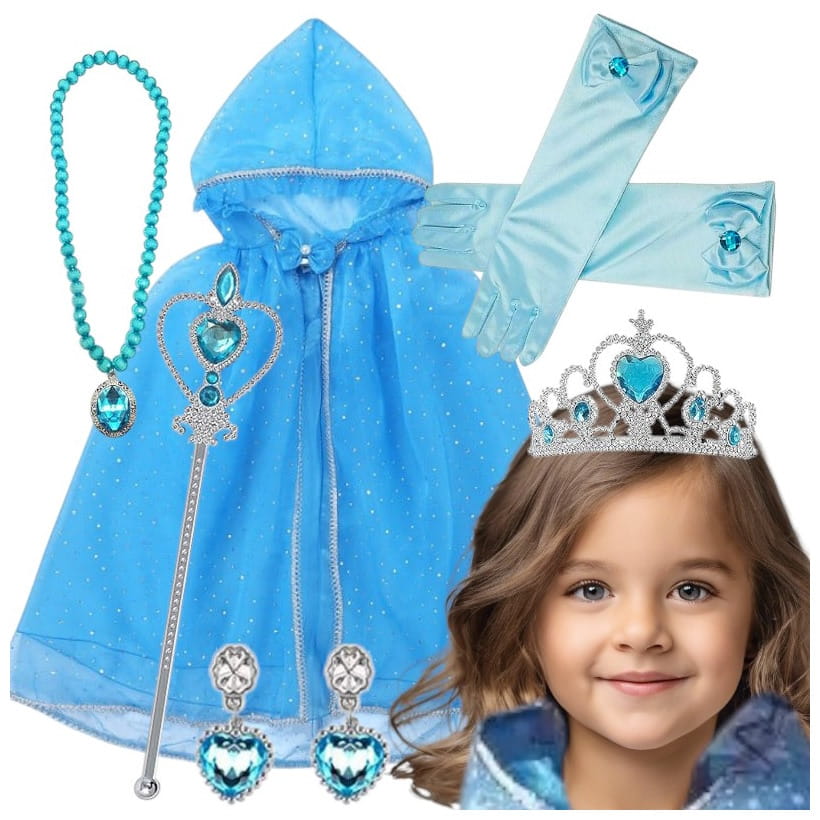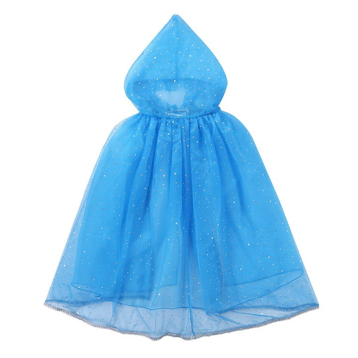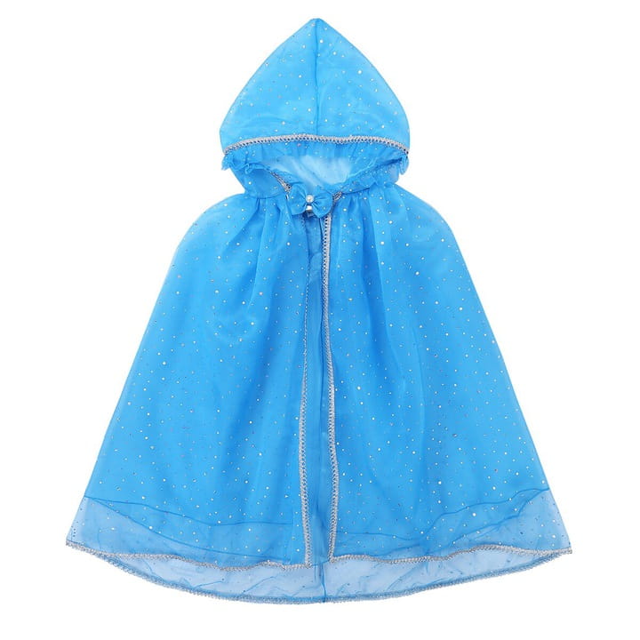 Przepiękna, niebieska peleryna z kapturem dla małych Księżniczek. Peleryna ma zapięcie na rzep pod szyją, które zapewnia stabilność podczas noszenia, a jednocześnie łatwo ją zdjąć.