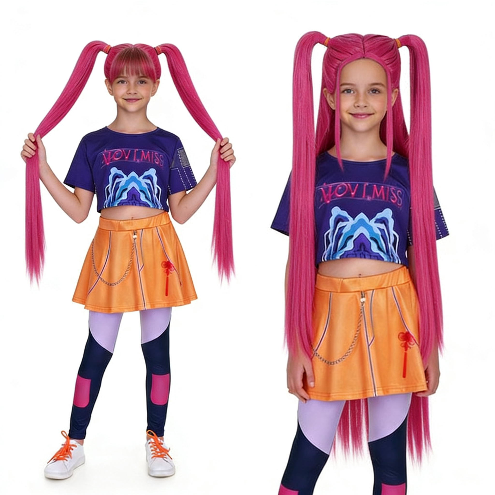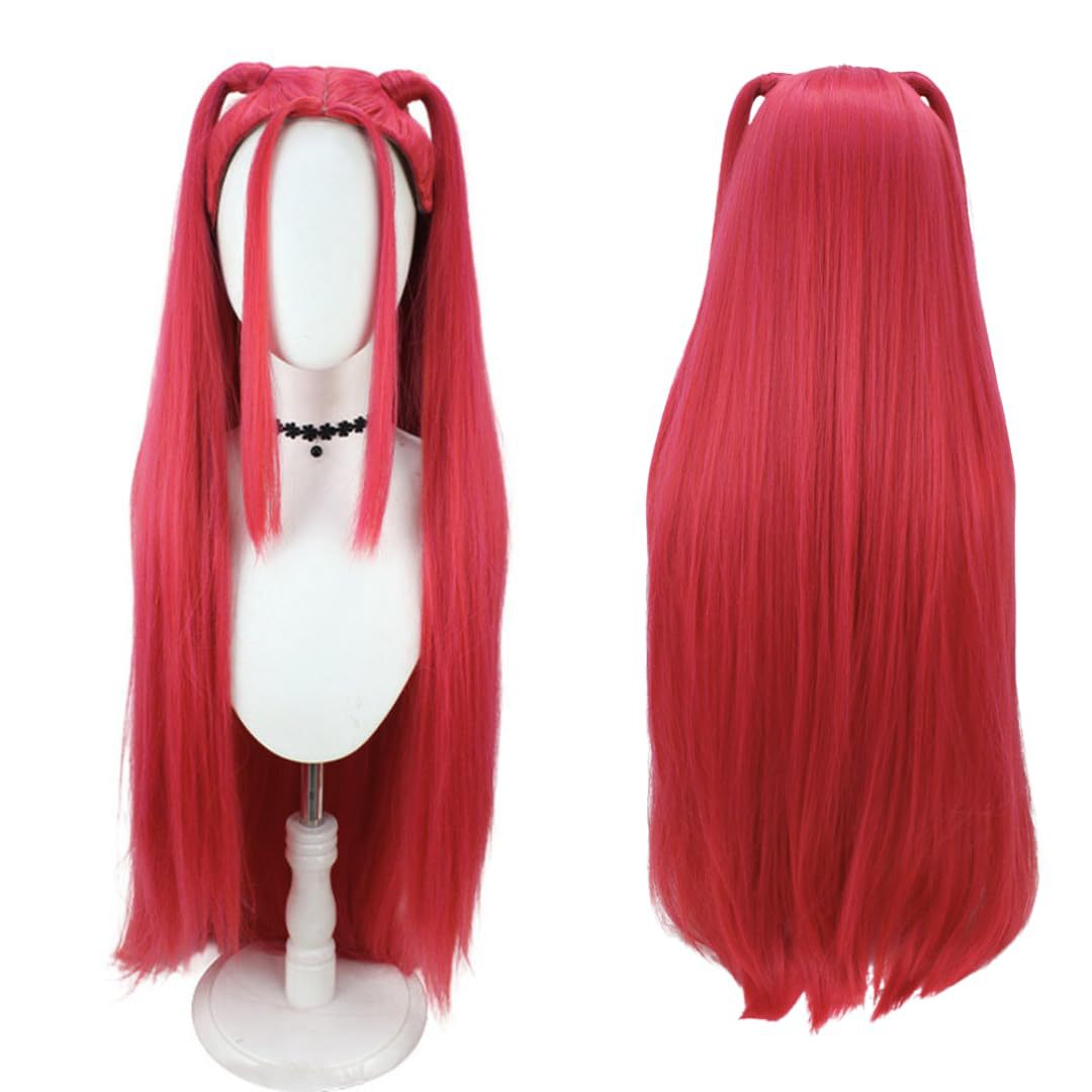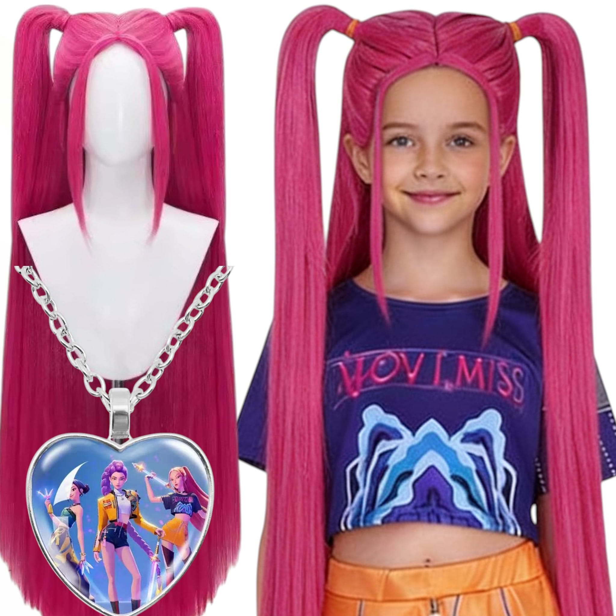Długa, różowa peruka w stylu charakterystycznym dla postaci Miry z uniwersum K-pop Demon Hunters to doskonały wybór dla osób tworzących cosplay, stylizacje sceniczne lub sesje zdjęciowe inspirowane tą estetyką. Gładkie, proste pasma oraz kucyki nadają fryzurze dynamiczny, nieco futurystyczny wygląd, który znakomicie prezentuje się na żywo i w obiektywie.