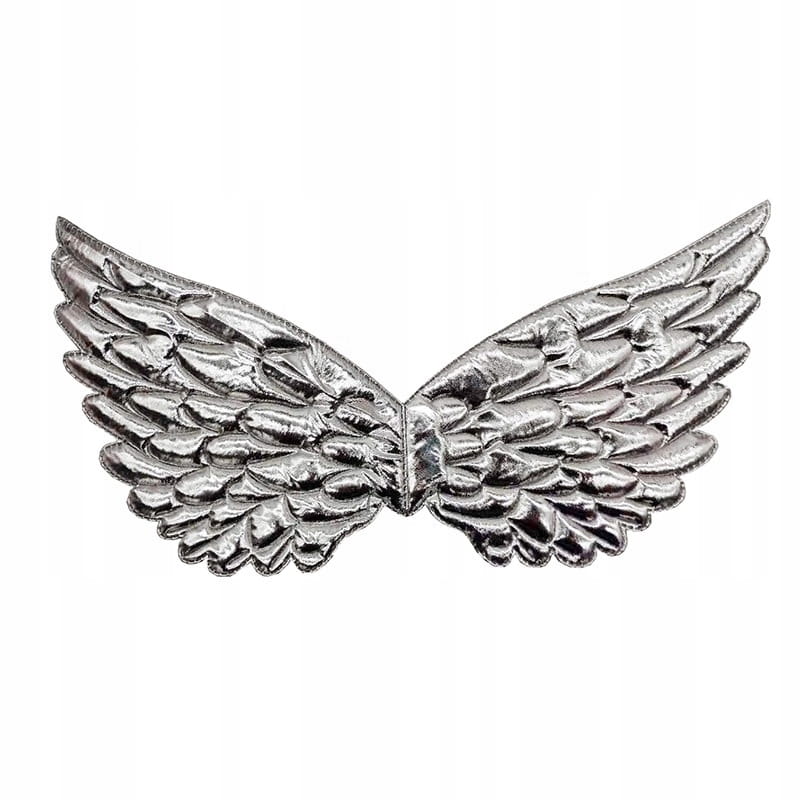 Miękkie skrzydła z przeszyciami imitującymi pióra i metalicznym błyszczącym wykończeniem.