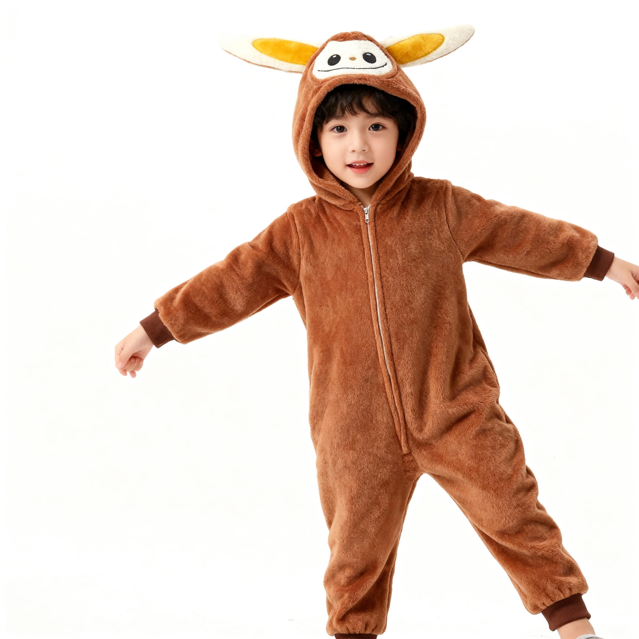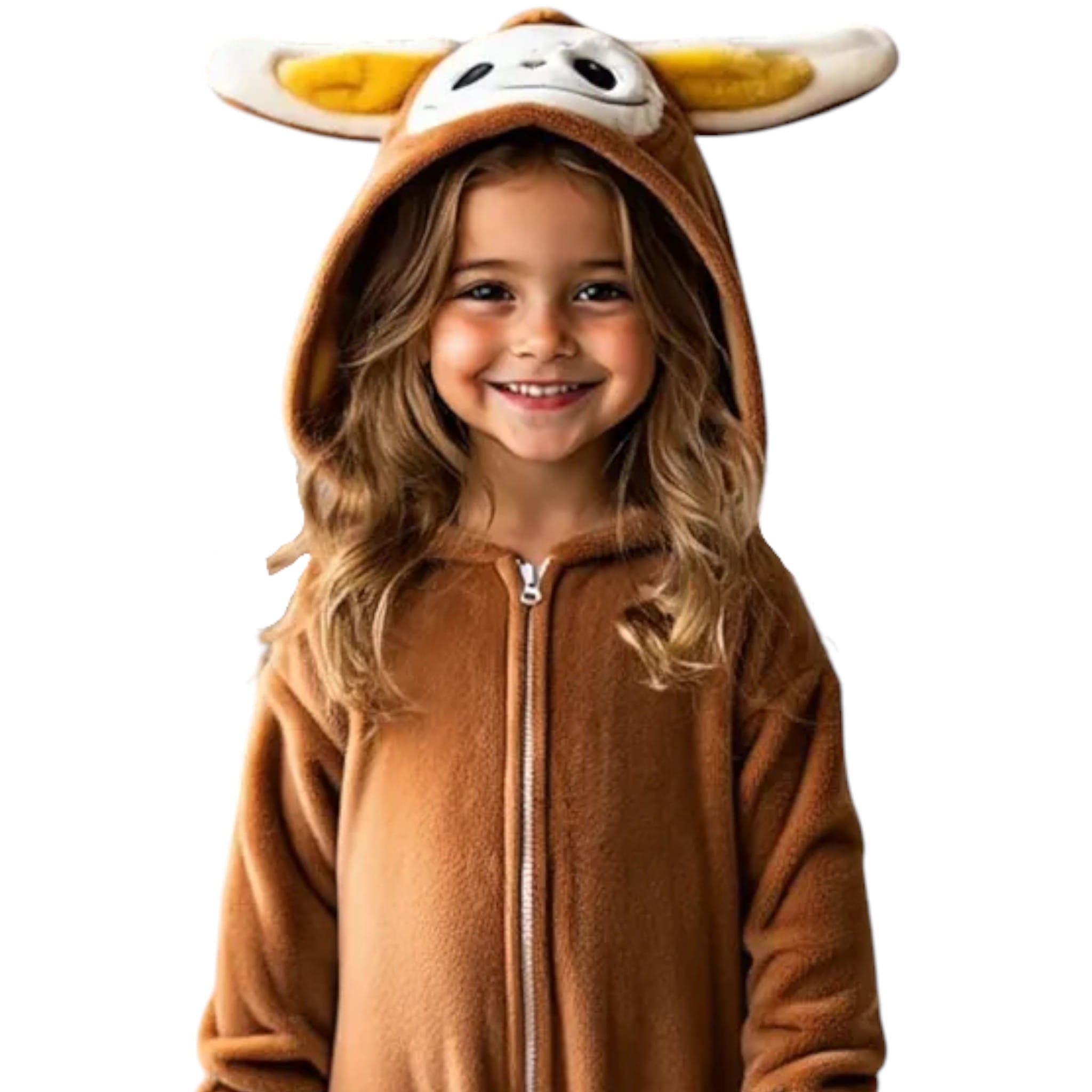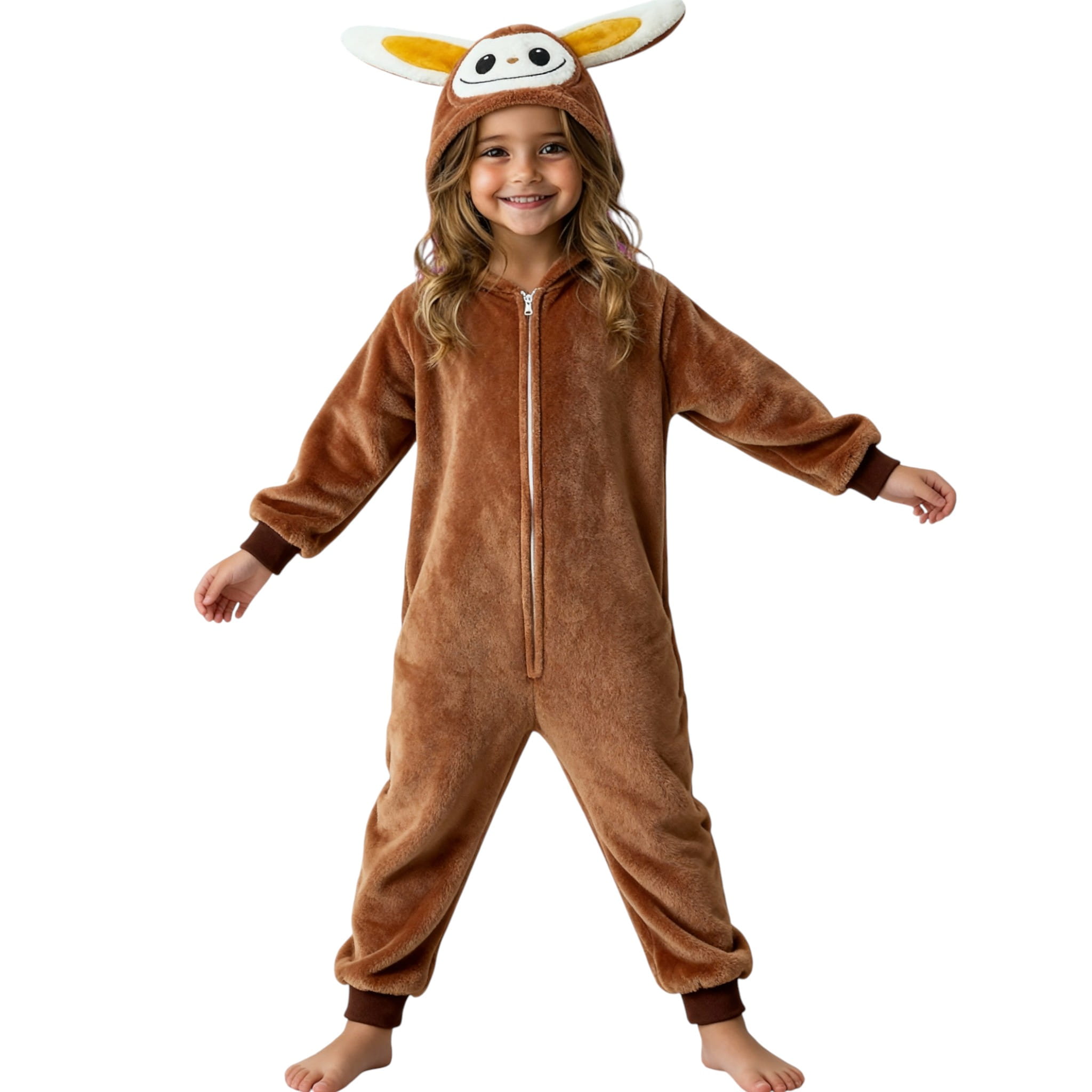 Piżamka została wykonana z wyjątkowo miękkiego, przyjemnego w dotyku materiału, który otula jak mięciutki kocyk. Całość utrzymana jest w pięknym, głębokim odcieniu bązu, a największym hitem jest duży kaptur z wesołą buźką Labubu i charakterystycznymi, długimi uszkami. To połączenie, obok którego nie można przejść obojętnie!