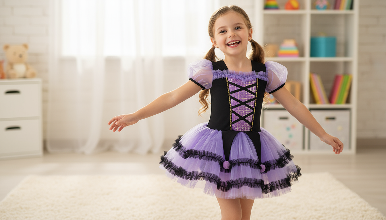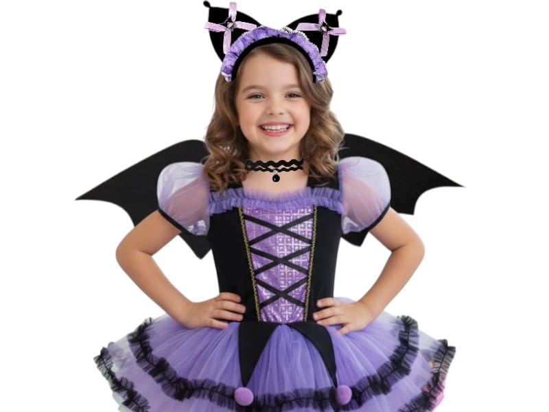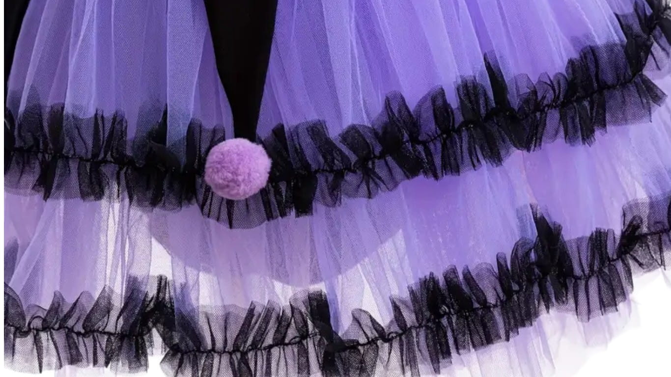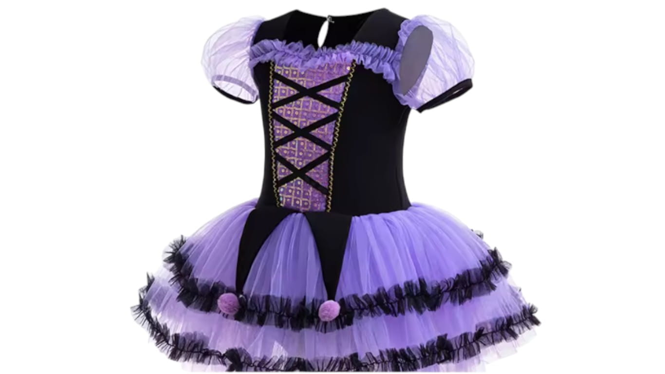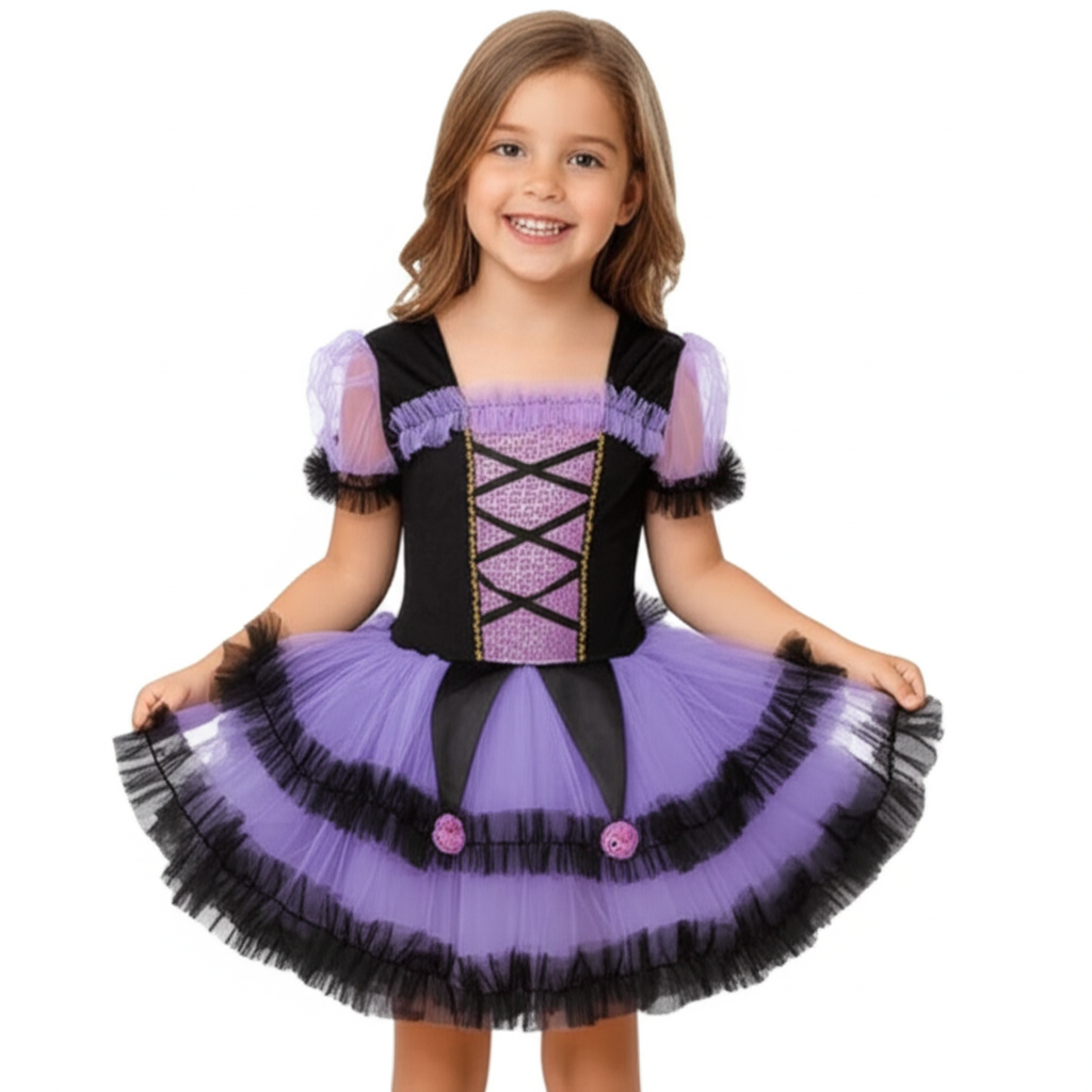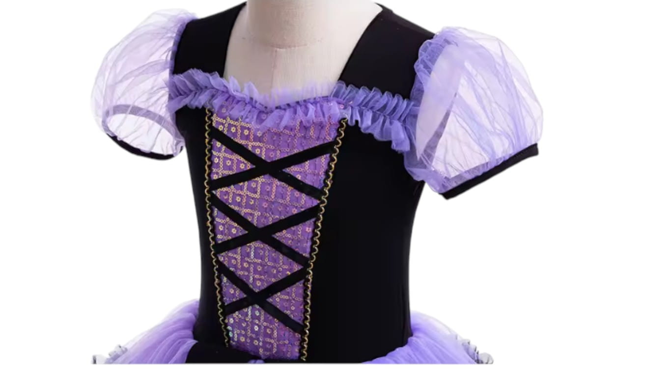 Strój pozwala dziecku wcielić się w ulubioną bohaterkę i poczuć się wyjątkowo. Całość utrzymana jest w uroczych odcieniach fioletu i czerni, z pięknymi ozdobami i dopracowanymi detalami.