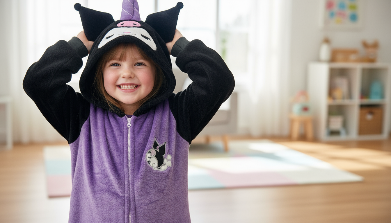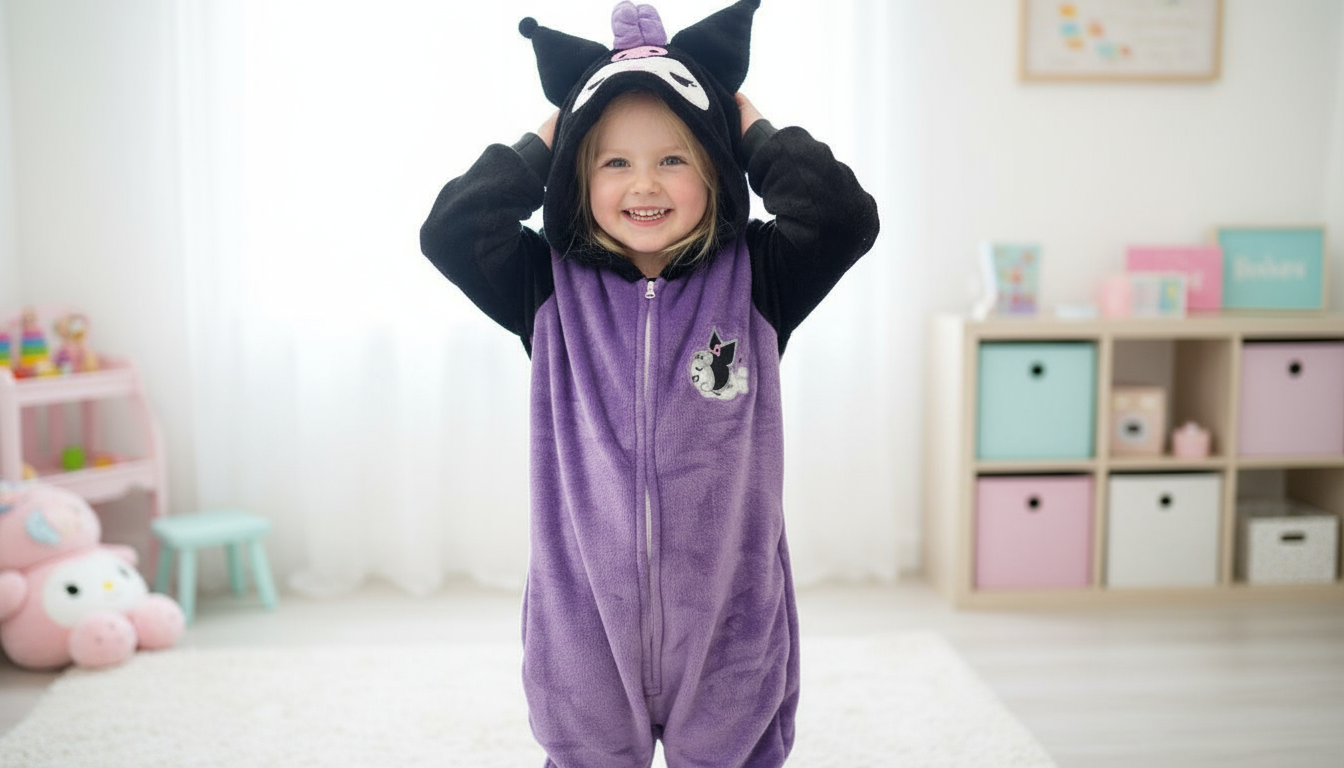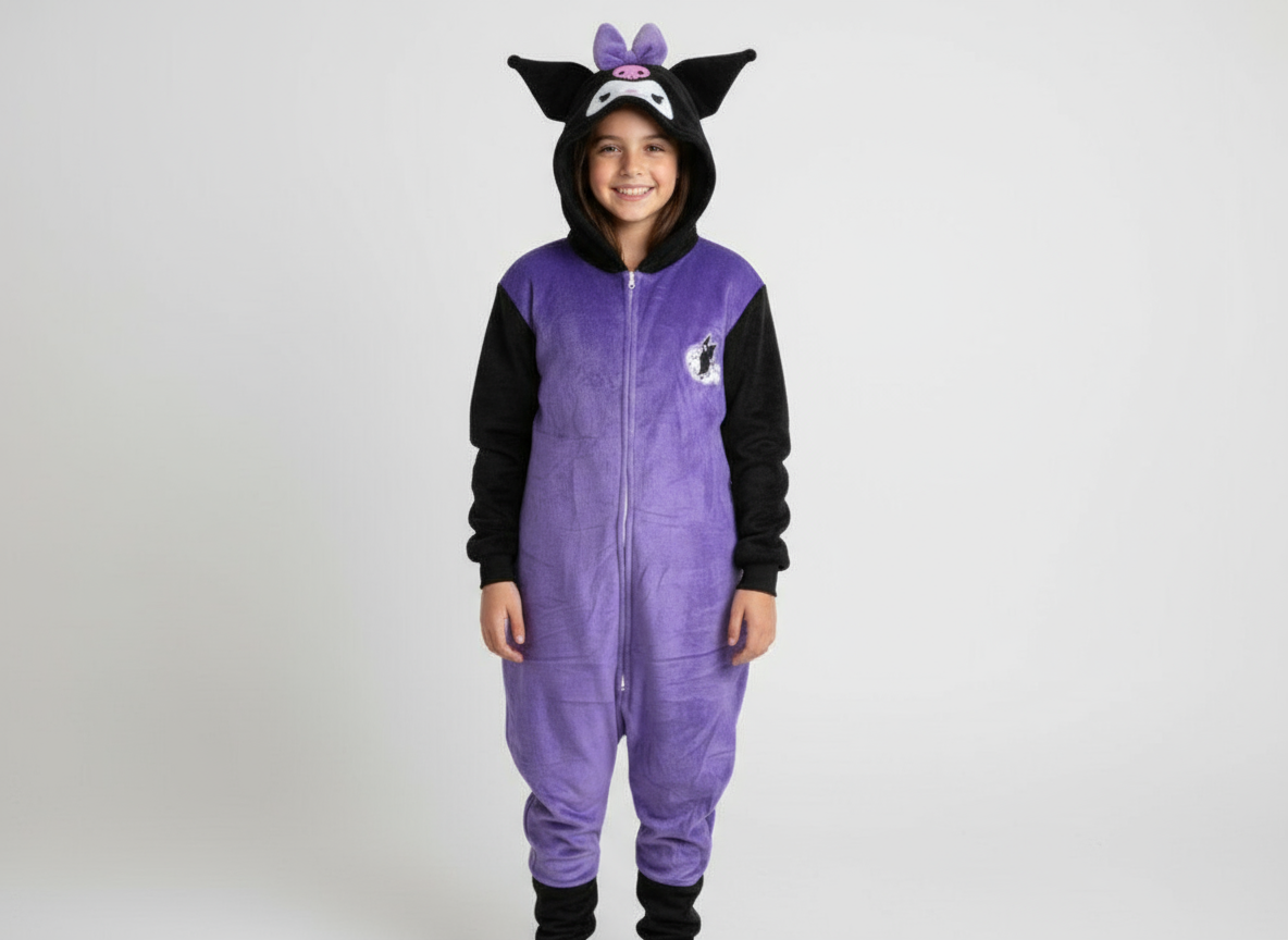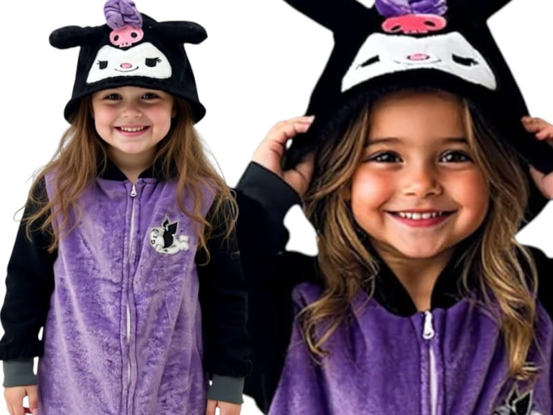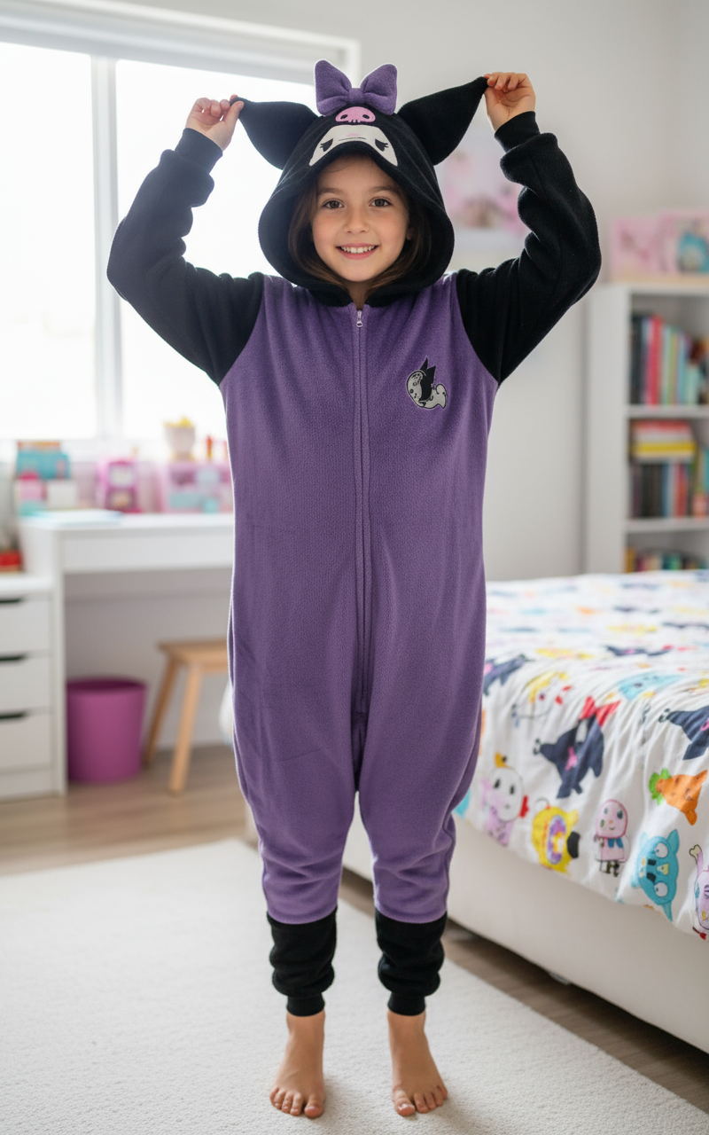 Przenieś swoje dziecko do świata uroczej Kuromi! Ten ciepły i przytulny kombinezon to idealne połączenie wygody, zabawy i jakości.