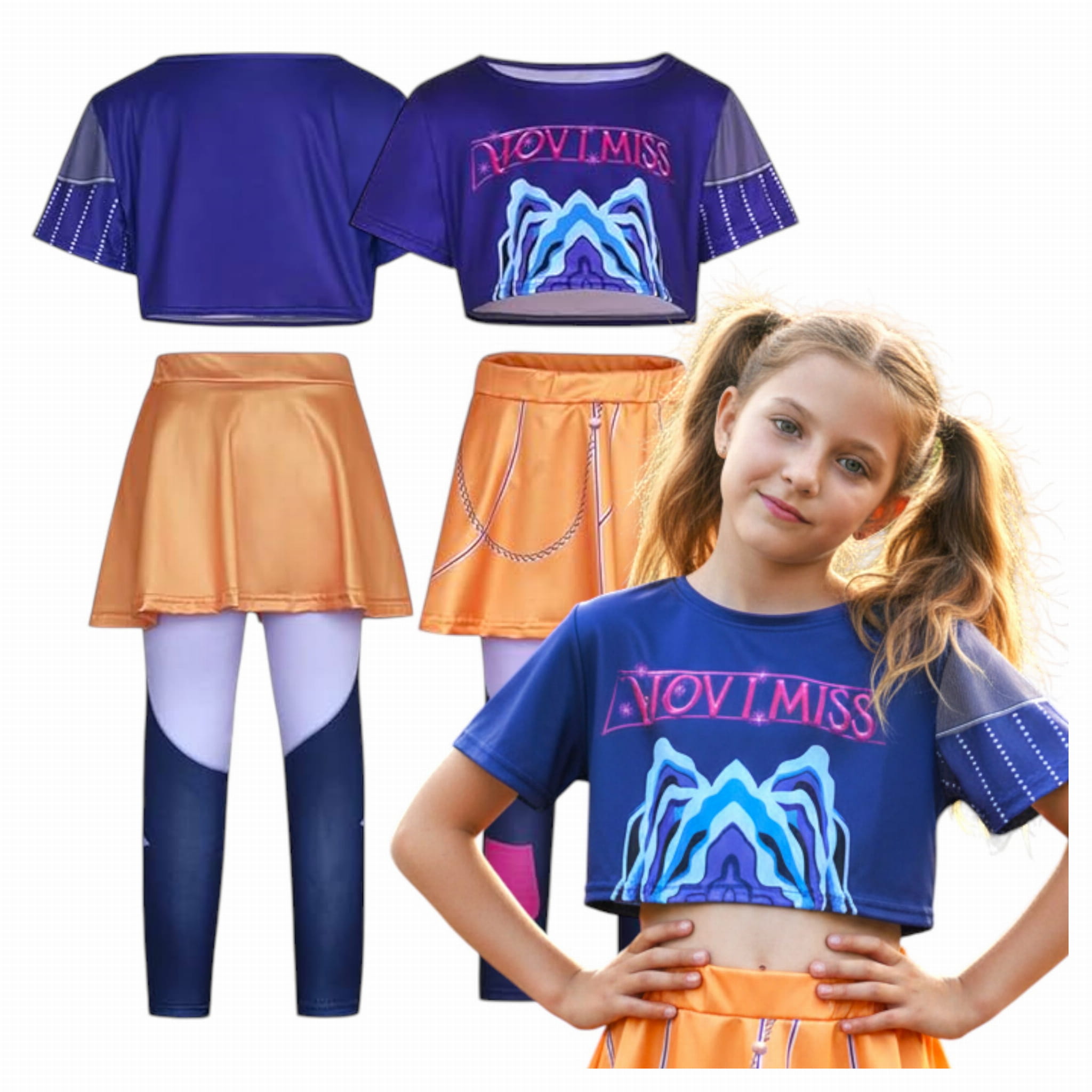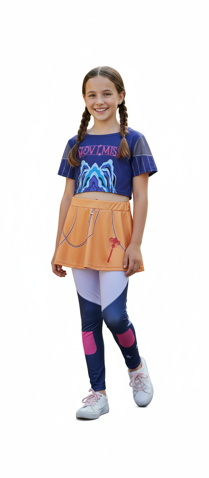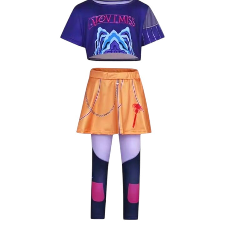 Strój inspirowany Mirą z K-Pop Demon Hunters – komplet top + getry + spódniczka