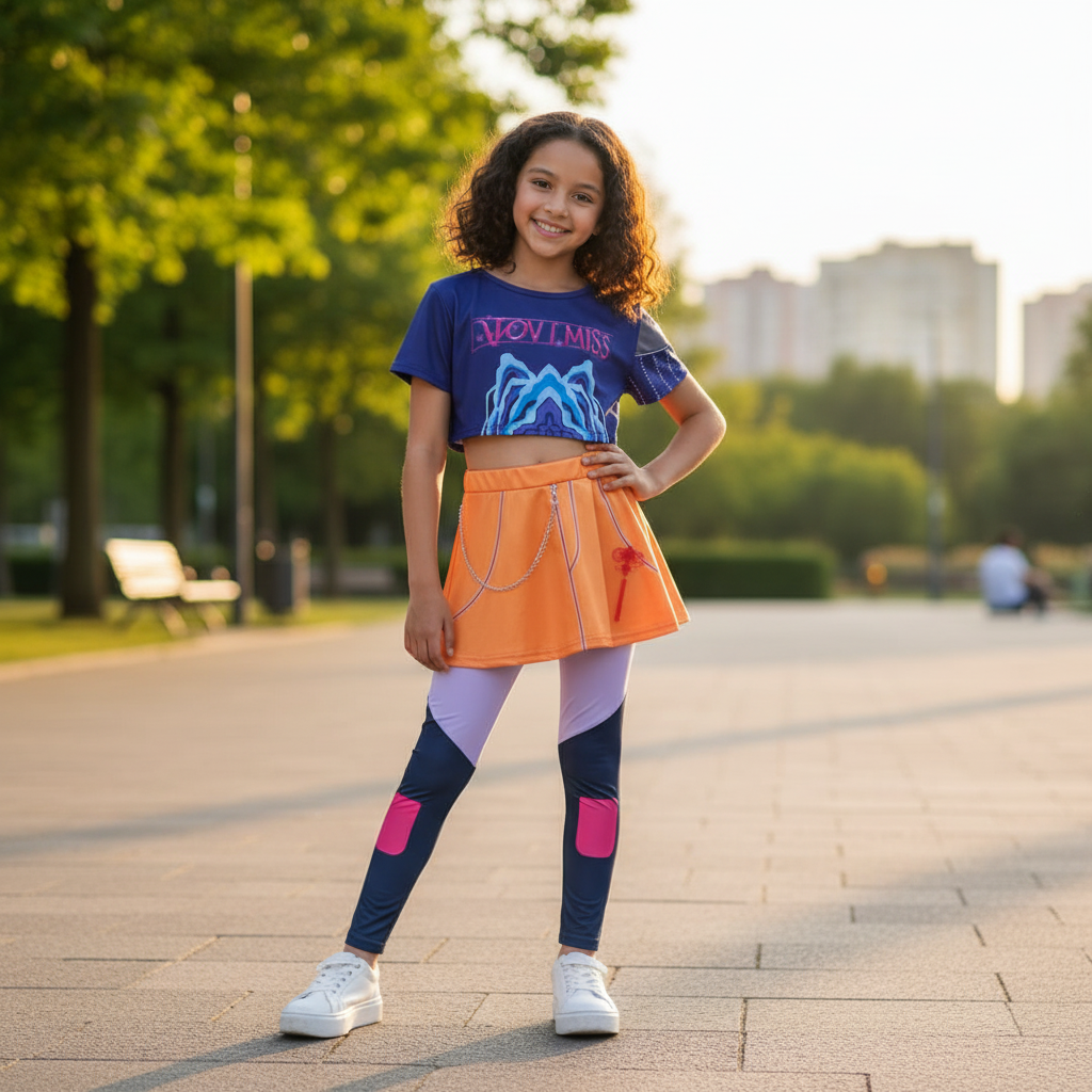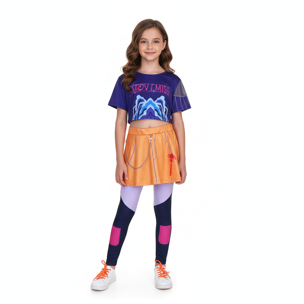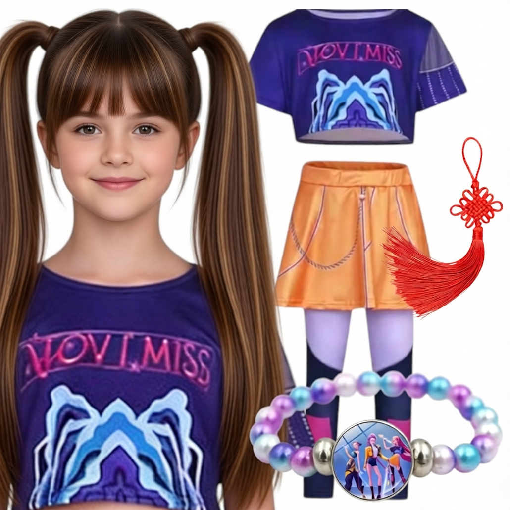 Wejdź w świat energii, tańca i przygód! Ten wyjątkowy komplet inspirowany Mirą z K-Pop Demon Hunters to idealna propozycja dla młodych fanek kolorowych stylizacji i bohaterskich historii. Zestaw składa się z trzech elementów:
