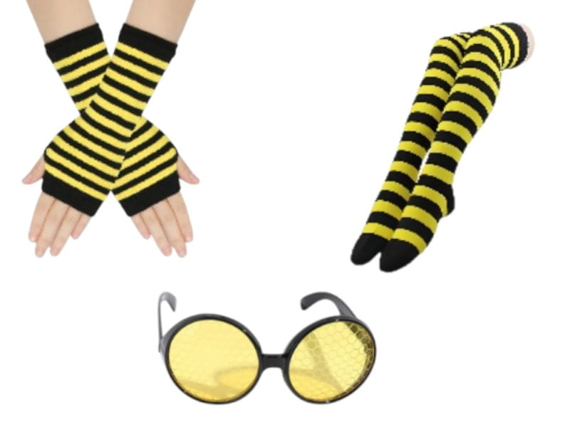 rękawiczki i podkolanówki w żółto-czarne paski,
