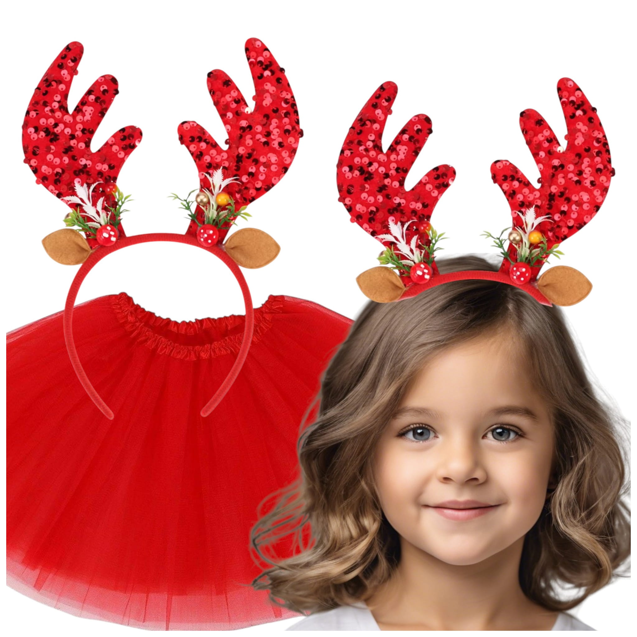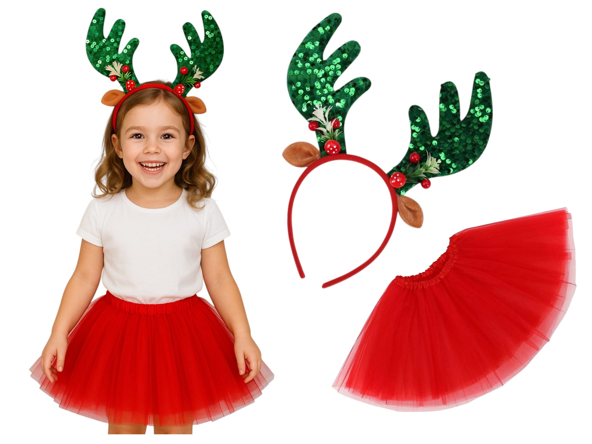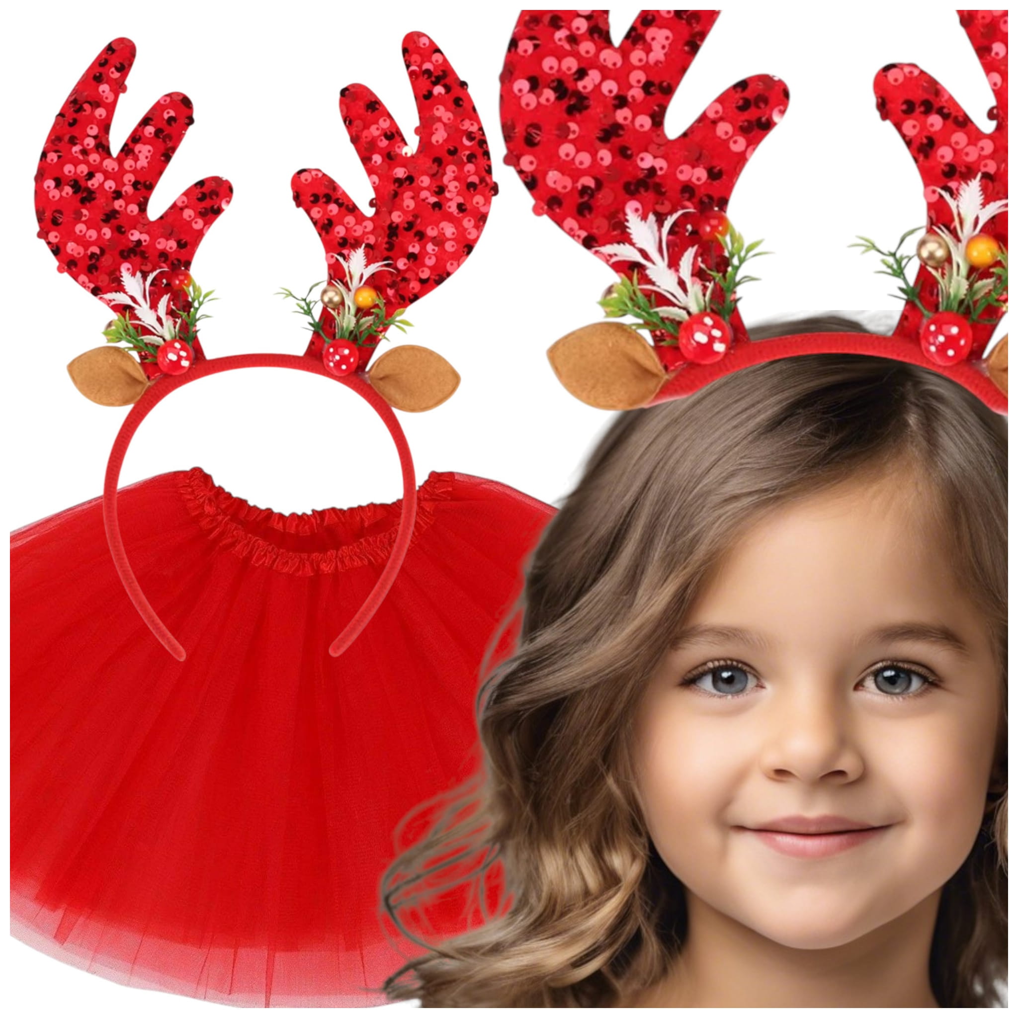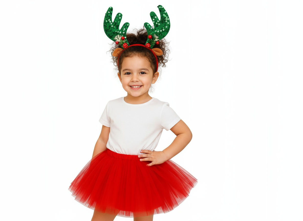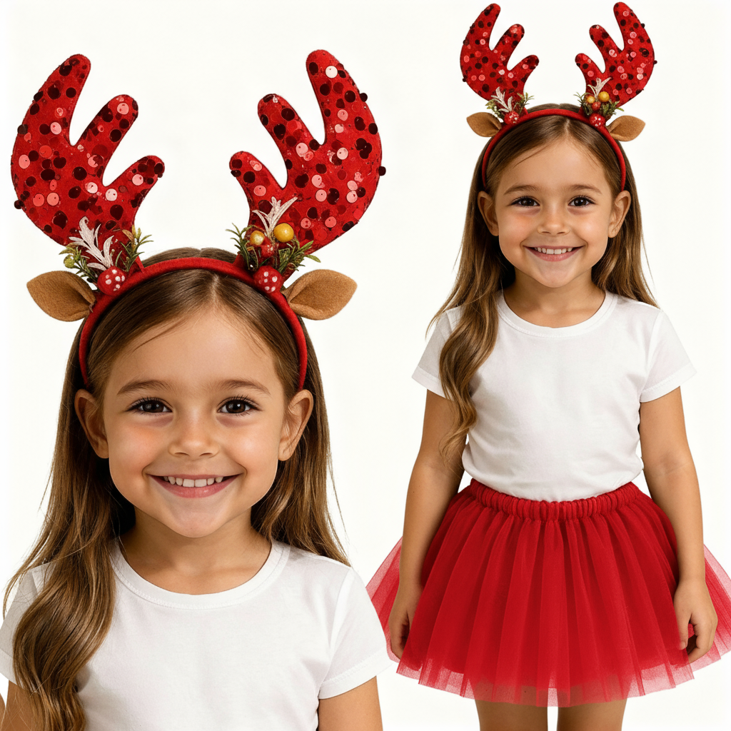 - opaskę Renifera: Ten uroczy gadżet to klasyczny element stroju Renifera. Wykonana z miękkiego i przyjemnego w dotyku materiału, doskonała do zabawy, a jednocześnie dodaje uroku i autentyczności całej kreacji. Rogi występują w czterych świątecznych kolorach: czerwony, głęboka zieleń, beż oraz śnieżna biel.