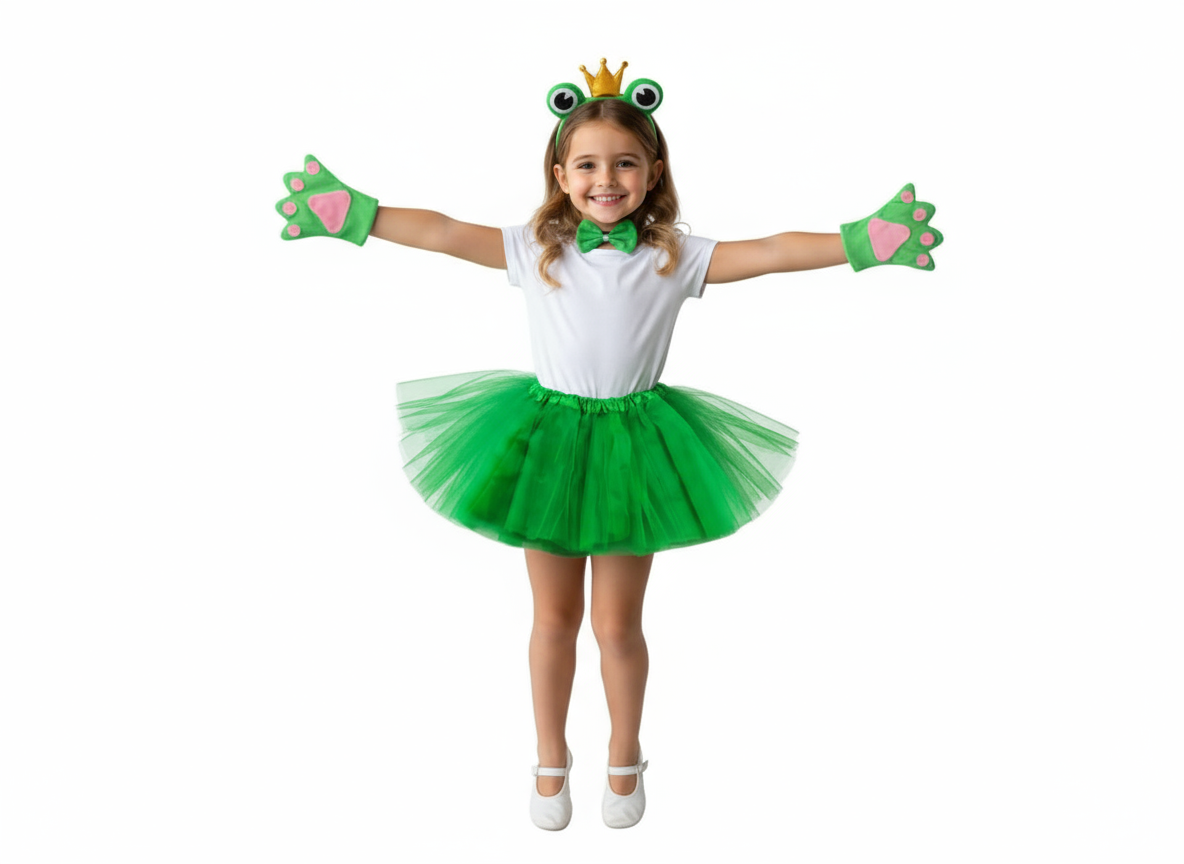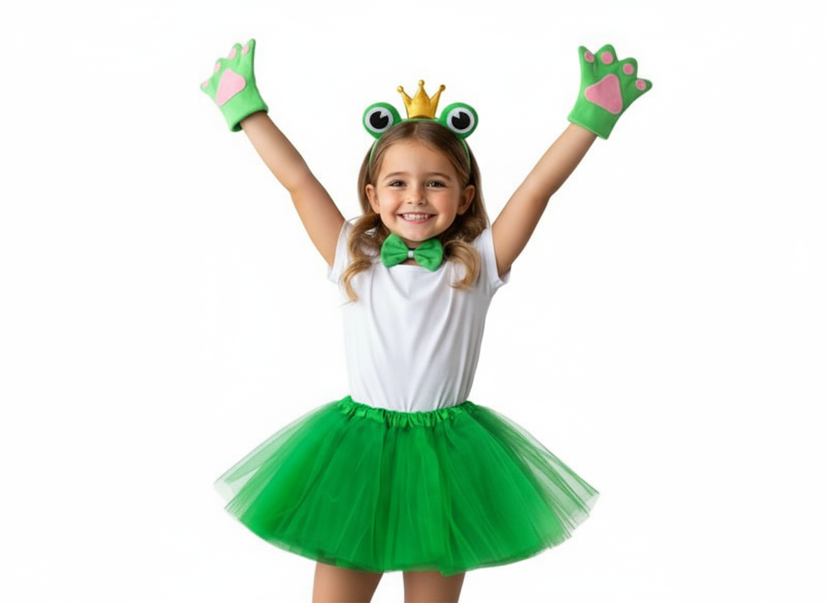 Zestaw Żabka to uroczy kostium, który pozwoli każdemu dziecku wcielić się w sympatyczną mieszkankę stawu!