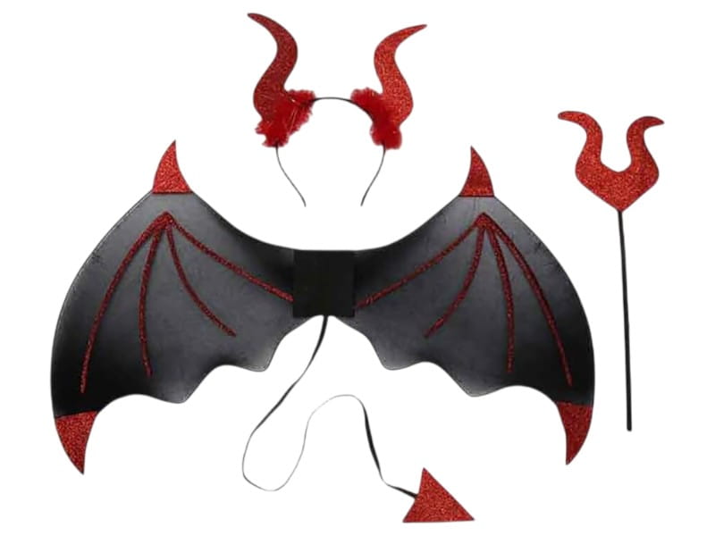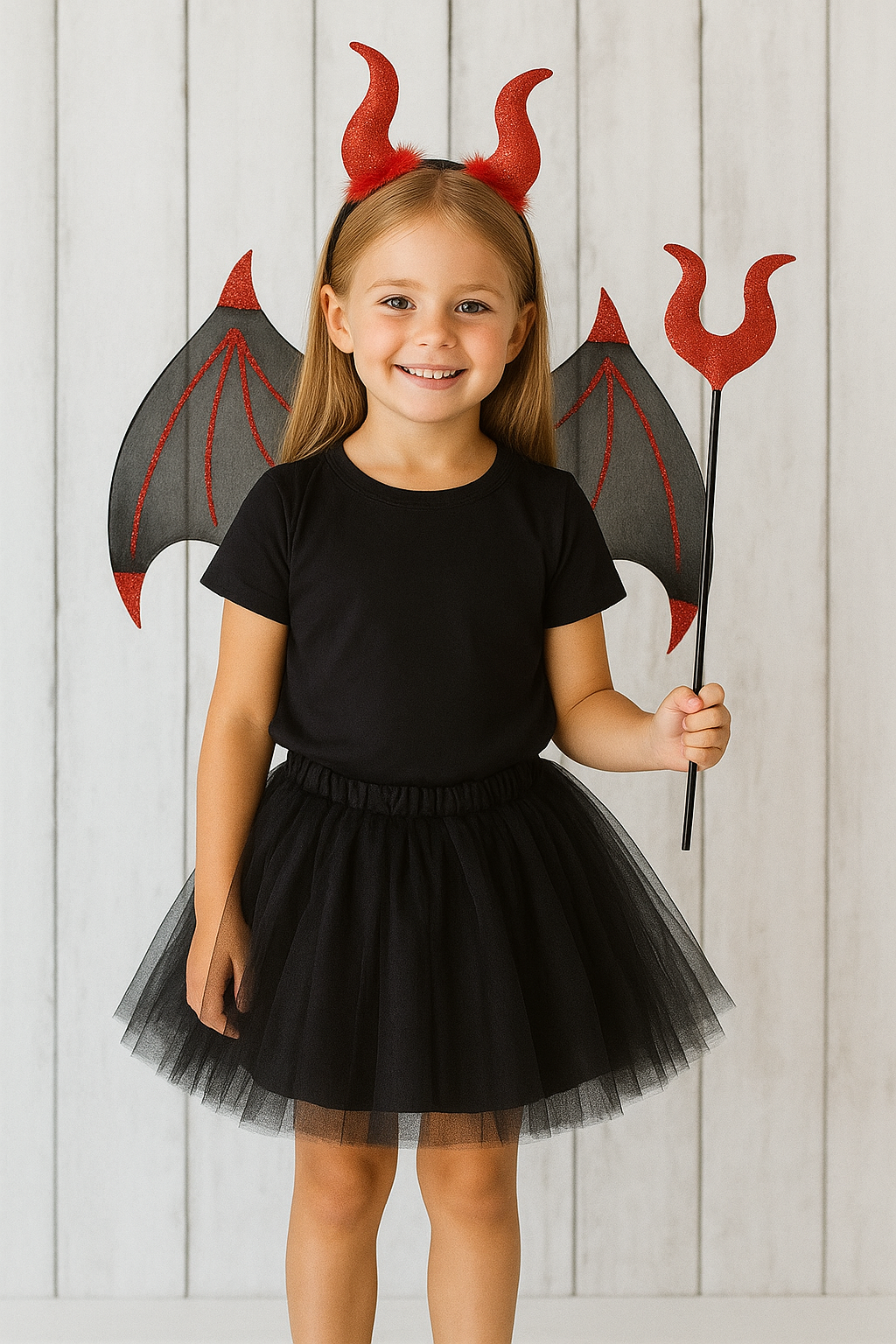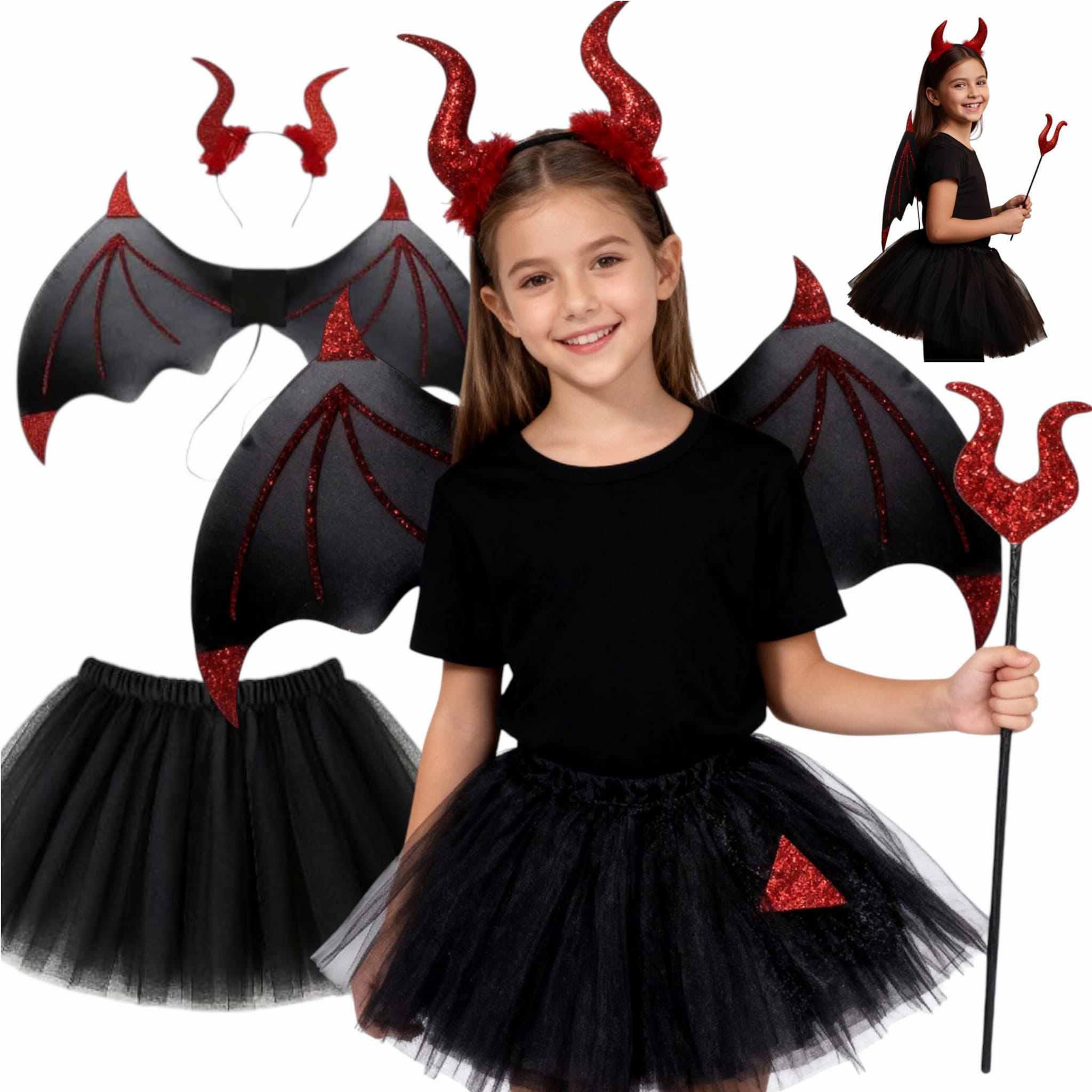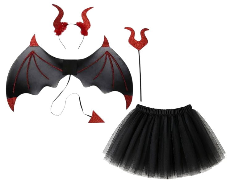 Zestaw diabełka dla dzieci – skrzydła, spódniczka, opaska i widły