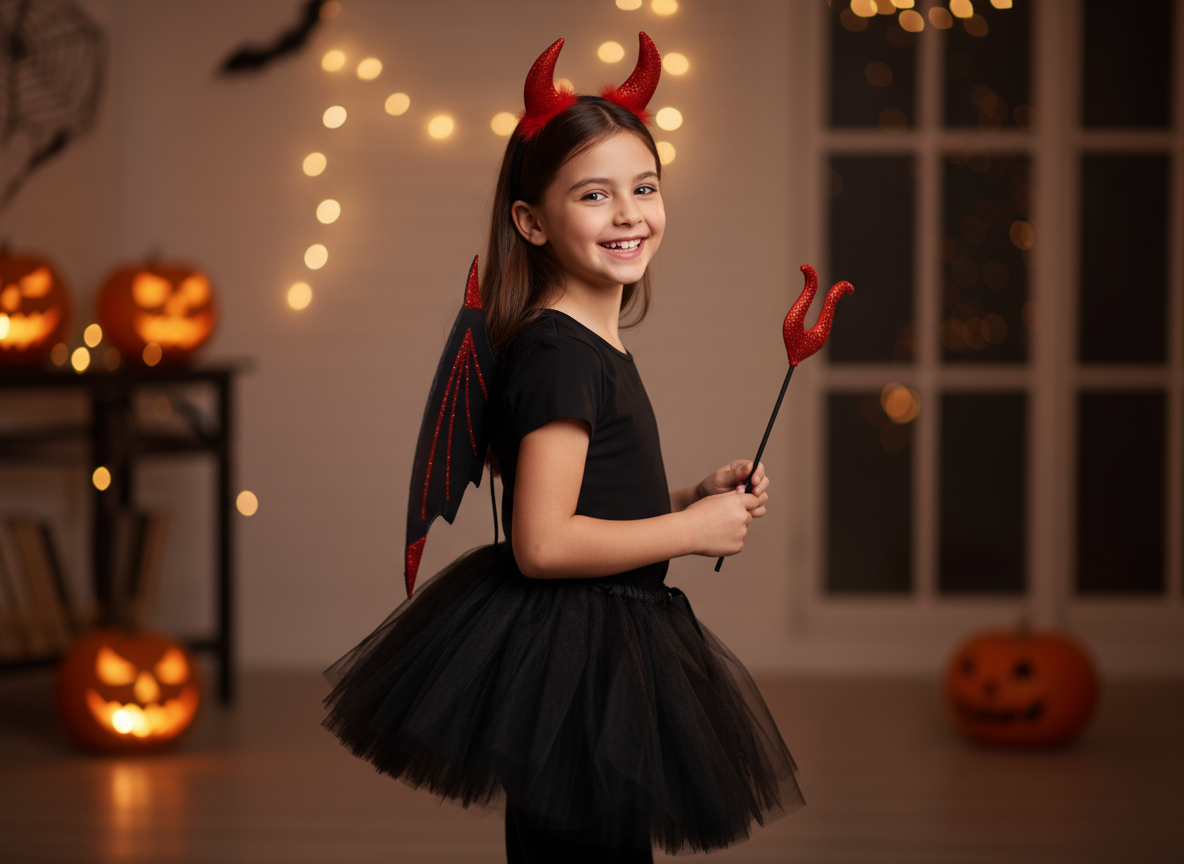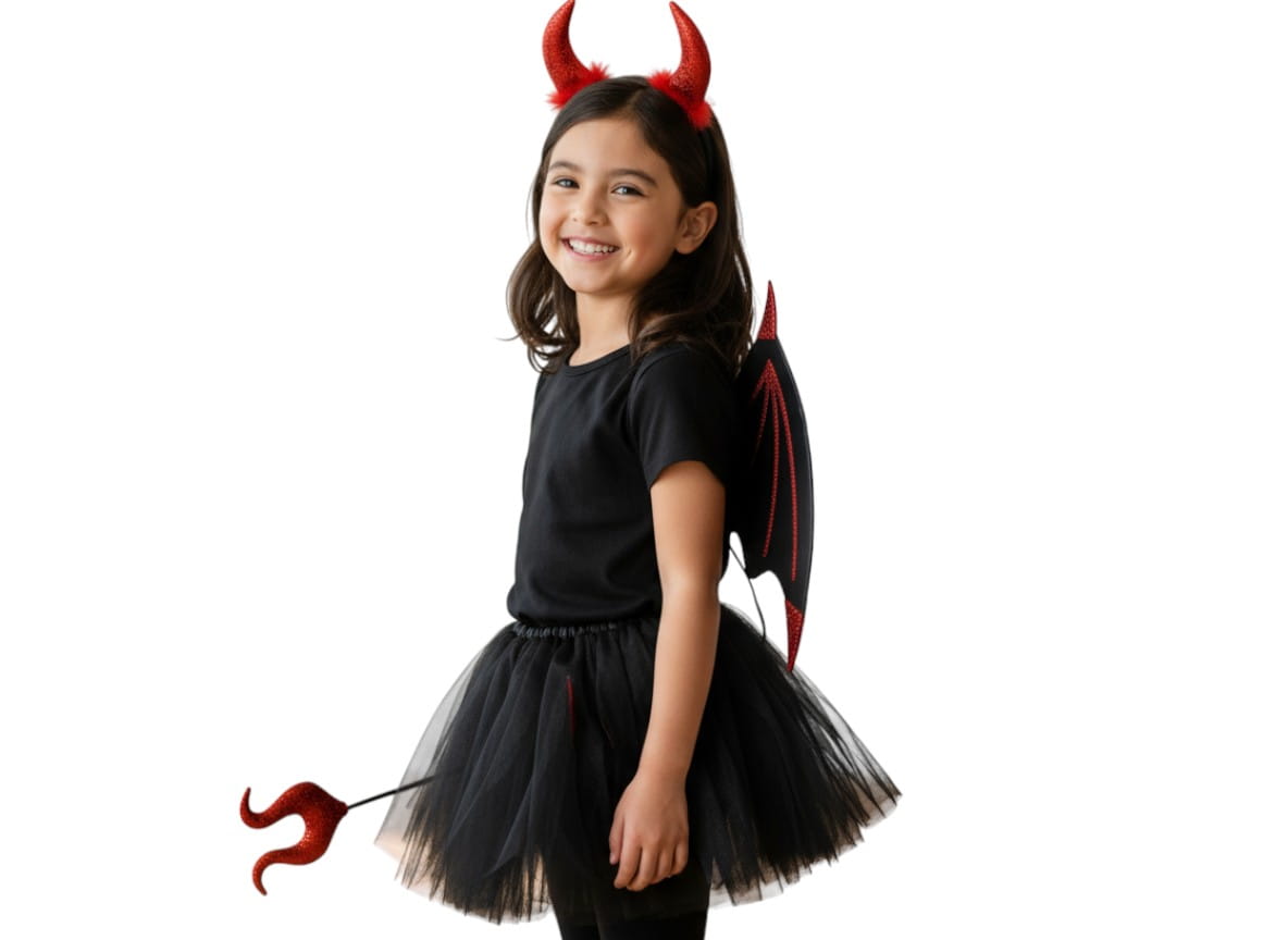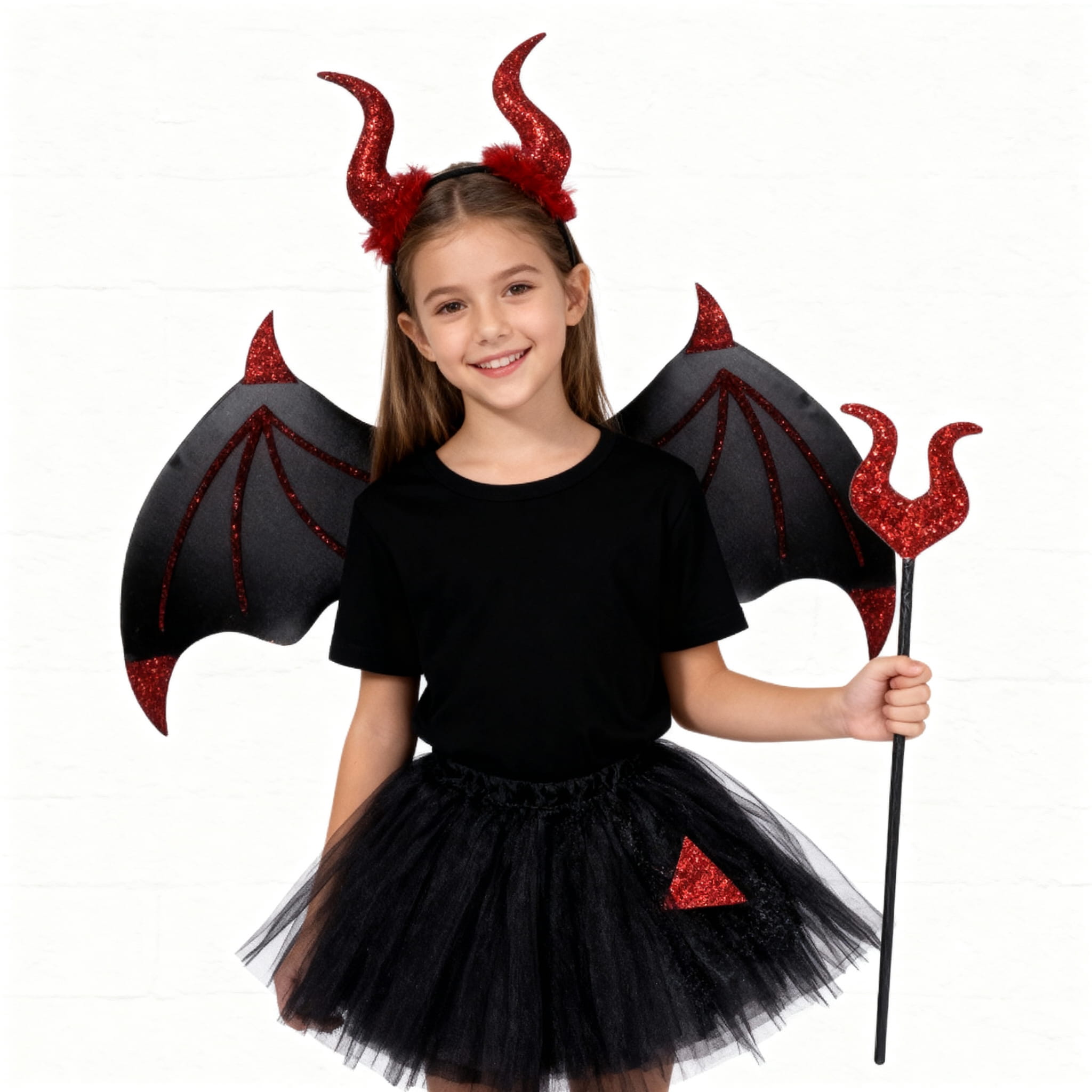 Zestaw diabełka dla dzieci – skrzydła, spódniczka, opaska i widły
