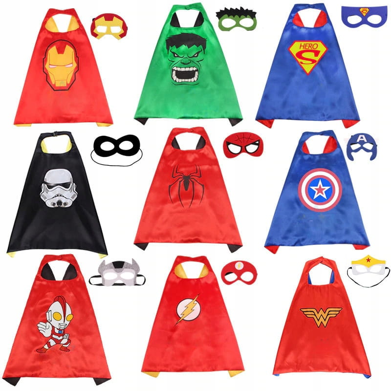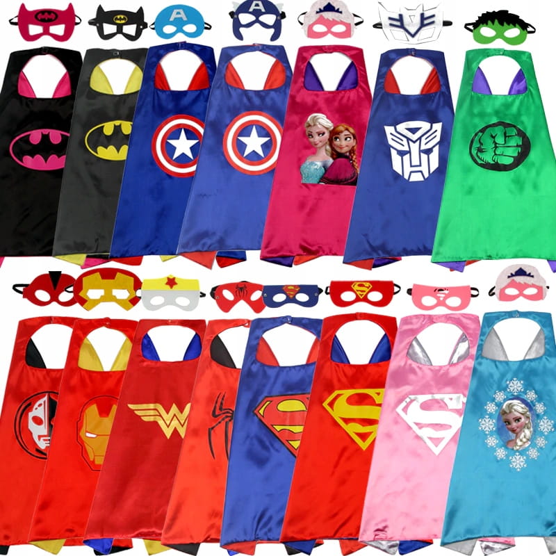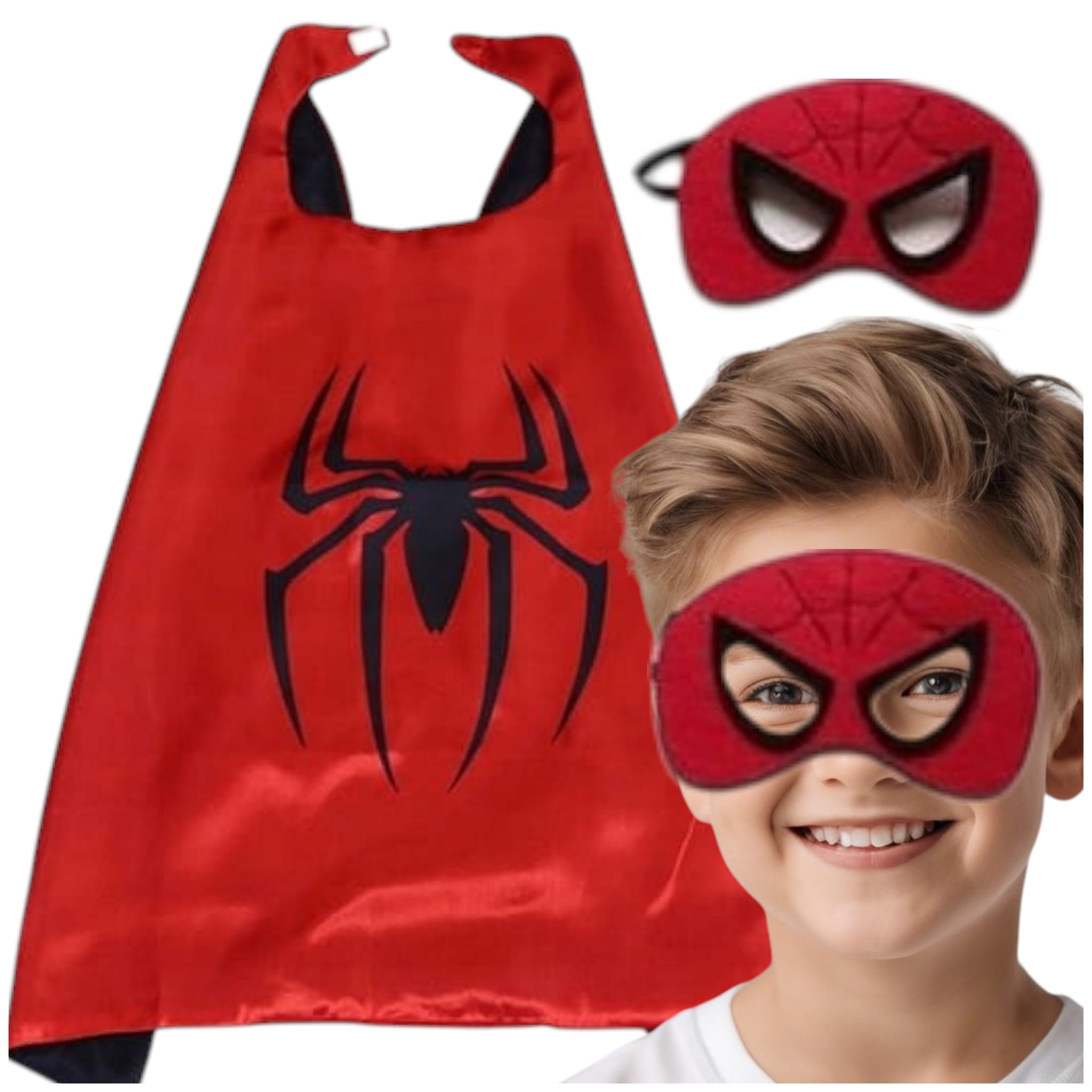 - pelerynę: peleryna uszyta z bardzo miłego w dotyku materiału imitującego satynę, z zewnątrz koloru czerwonego oraz znak superbohatera.