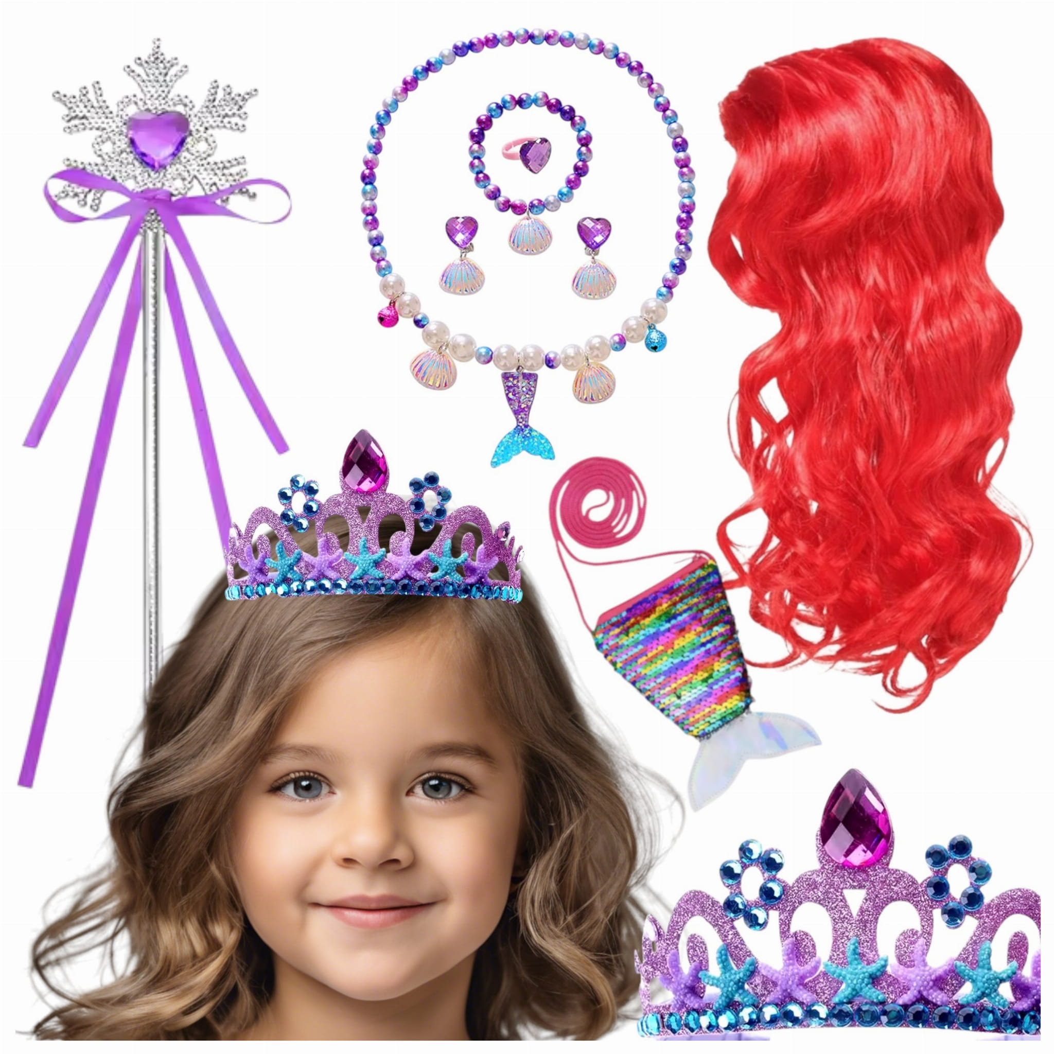 Zestaw dla dzieci Syrenka Arielka to magia podwodnego świata zamknięta w jednym! Ta urocza kreacja pozwala wcielić się w postać kultowej Syrenki Ariel z bajki Disneya i pięknie dopełnić przebarnie Syrenki.