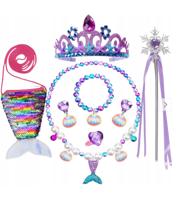 Zestaw dla dzieci Syrenka Arielka to magia podwodnego świata zamknięta w jednym! Ta urocza kreacja pozwala wcielić się w postać kultowej Syrenki Ariel z bajki Disneya i pięknie dopełnić przebarnie Syrenki.